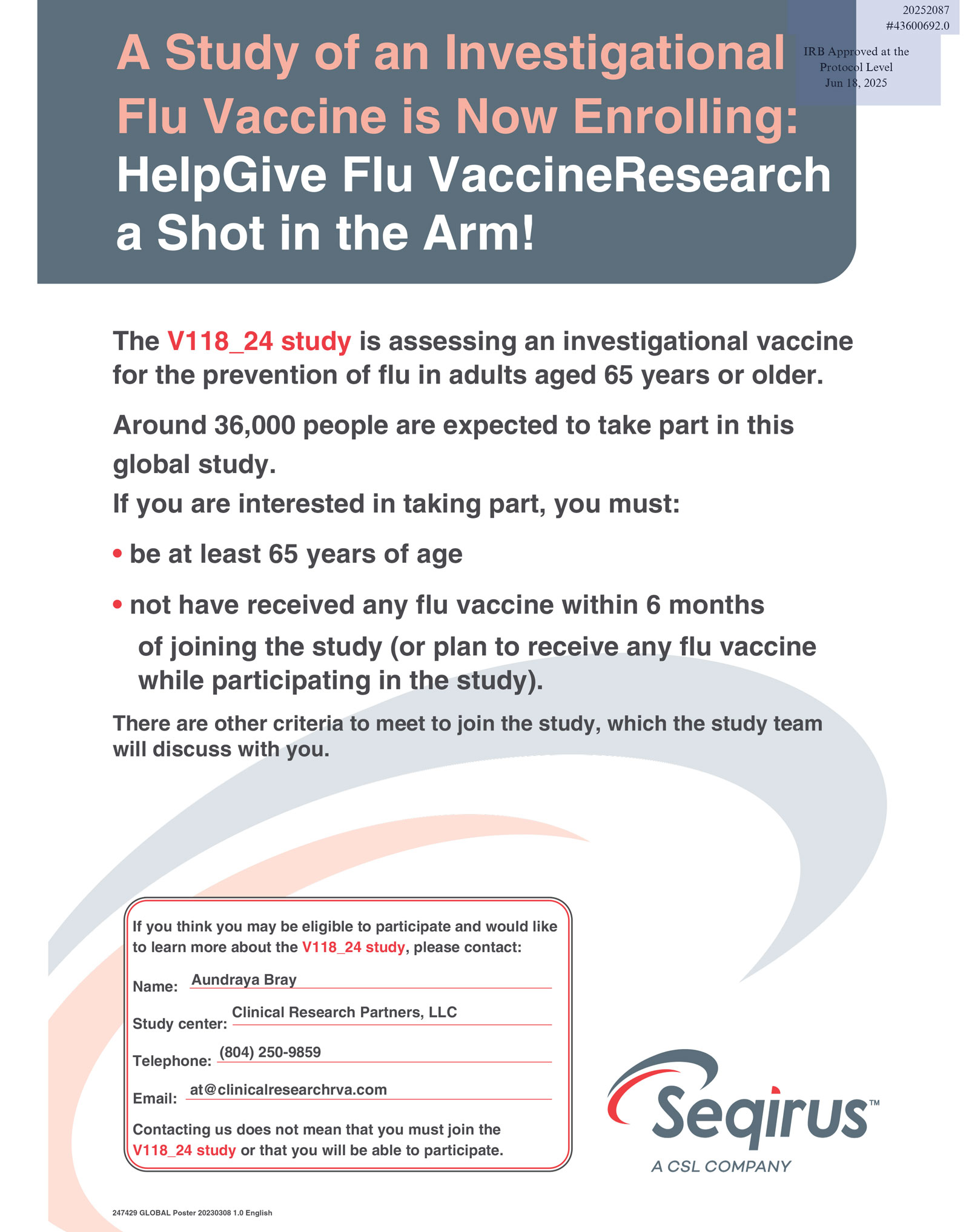 Clinical Research Partners (7110 Forest Avenue, Suite 201, Richmond, VA 23226)